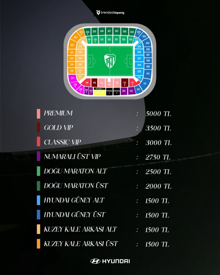 Bilet fiyatları 5.000 ile 1.500 TL arasında değişirken, futbolseverler biletlere passo.com.tr ve KS Store'dan ulaşabilirler. Kulüp ayrıca, maç başına daha avantajlı olan kombinelerin de satışının devam ettiğini duyurdu. Fenerbahçe takımı taraftarları için biletler satışa çıkarılmazken, 1740 biletin konuk takımın taraftar gruplarına verildiği iddia edildi.
