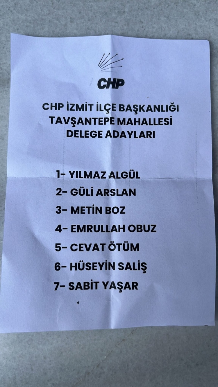 CHP İzmit İlçe Başkanlığı’nın kararıyla bugün 6 mahallede delege seçimi yapılacağı duyuruldu. Tüysüzler, Tavşantepe ve Erenler için seçim saati 12.00 ile 15.00 arası olarak belirlenirken Tüysüzler’de seçim yoğunluk gerekçe gösterilerek 30 Ağustos’a ertelendi.