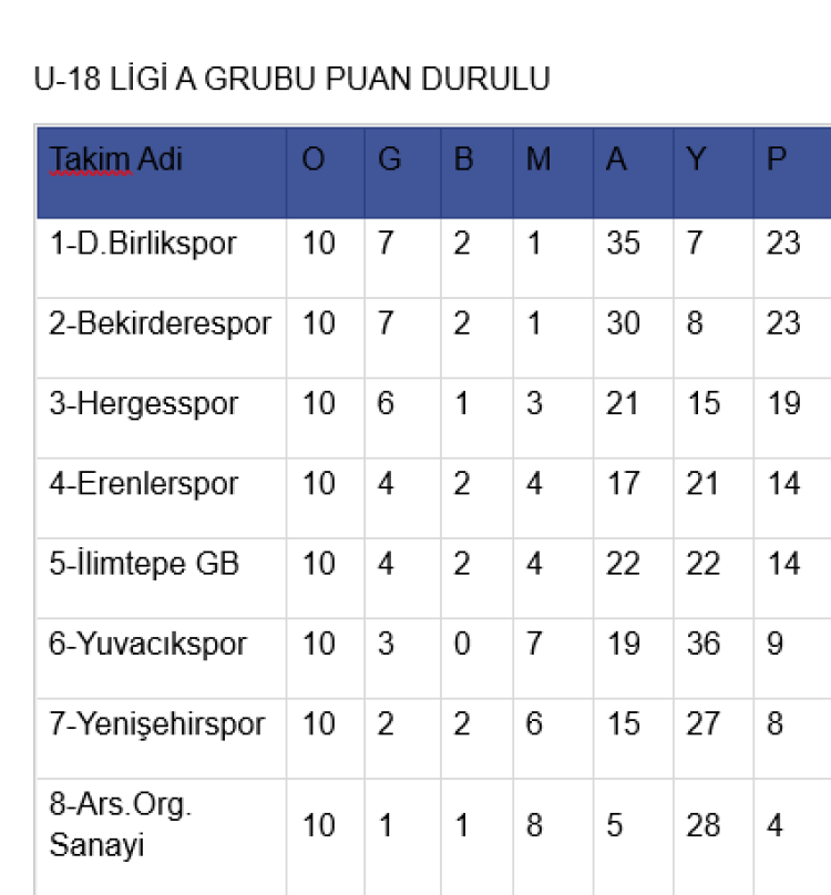 U-18 Ligi A Grubu’nda geçen hafta evinde mağlup olan Derince Birlikspor, Yenişehirspor ile aynı puana gelmişti.