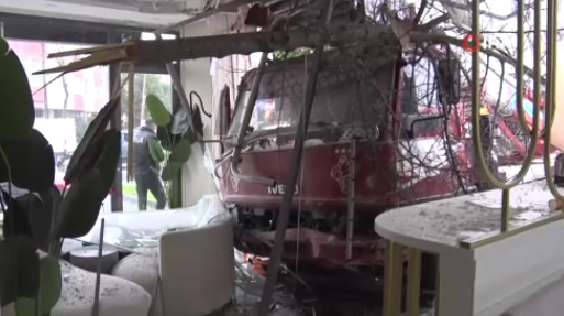 Kaza Büyükçekmece Fatih Mahallesi'nde öğle saatlerinde meydana geldi. Yokuş aşağı inen 38 AJF 546 plakalı sepetli vinç kontrolden çıkarak 34 EKD 524 plakalı araca çarparak sürükledi ardından da refüje çıkıp diş hekimliği polikliniğine daldı. Araçta bulunan 10 yaşındaki çocuk ve annesi yaralandı.