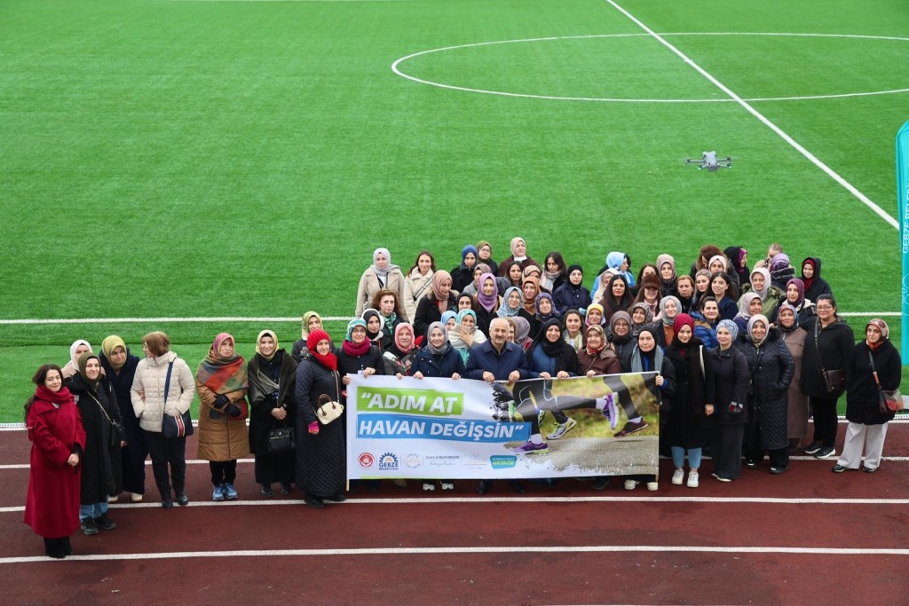 Gebze Belediyesi tarafından "Adım At, Havan Değişsin" mottosuyla düzenlenen etkinlikte bir araya gelen kadınlar, Pelitli Stadyumu'nda spor yaptı.