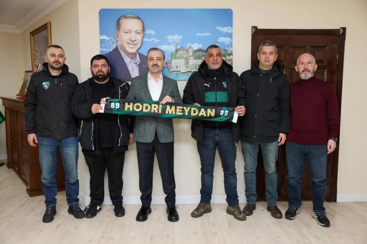 Kocaelispor taraftar grubu Hodri Meydan yöneticileri, AK Parti İl Başkanı Şahin Talus'u ziyaret etti.