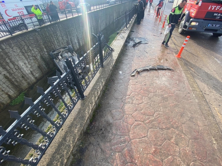 Kaza, Akyazı ilçesi Yahyalı Bağlantı yolu üzerinde meydana geldi. Sürücüsü öğrenilemeyen 34 JK 1052 plakalı otomobil, yağış nedeniyle kayganlaşan yolda kontrolden çıkarak yol kenarındaki su kanalına uçtu.