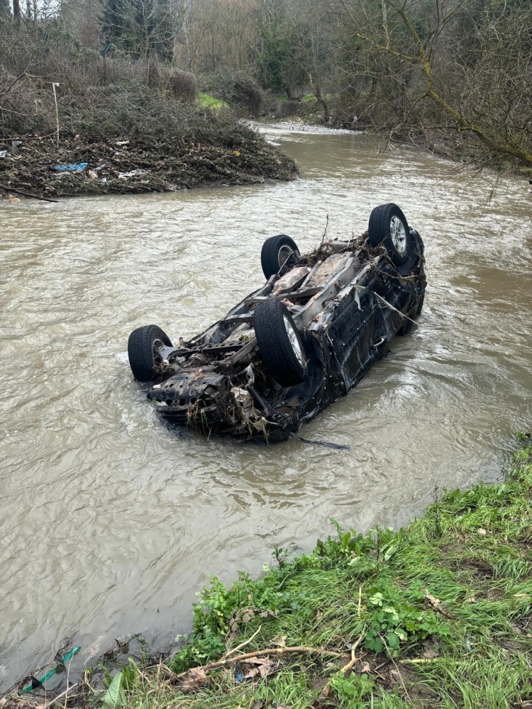 Kocaeli'nin Gebze ilçesinde sağanak yağışta dereye sürüklenen otomobil, bir gün sonra sahibi tarafından bulundu. Suların çekilmesiyle ortaya çıkan ve ekiplerce dereden çıkarılan araç kullanılamaz hale geldi.