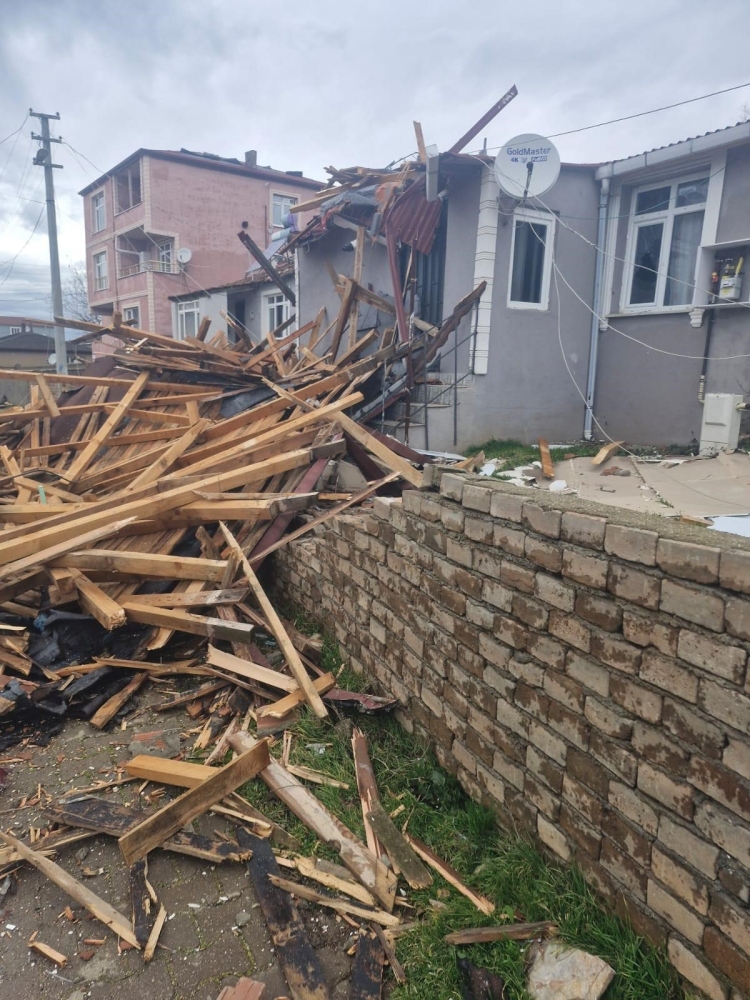 Marmara Bölgesi'ni dün etkisi altına alan şiddetli rüzgar, Körfez ilçesi Hereke'nin Cumhuriyet Mahallesi'nde ağır hasara neden oldu. Mahallede ağaçlar yola devrildi, elektrik telleri koptu ve birçok evin çatısı uçtu.