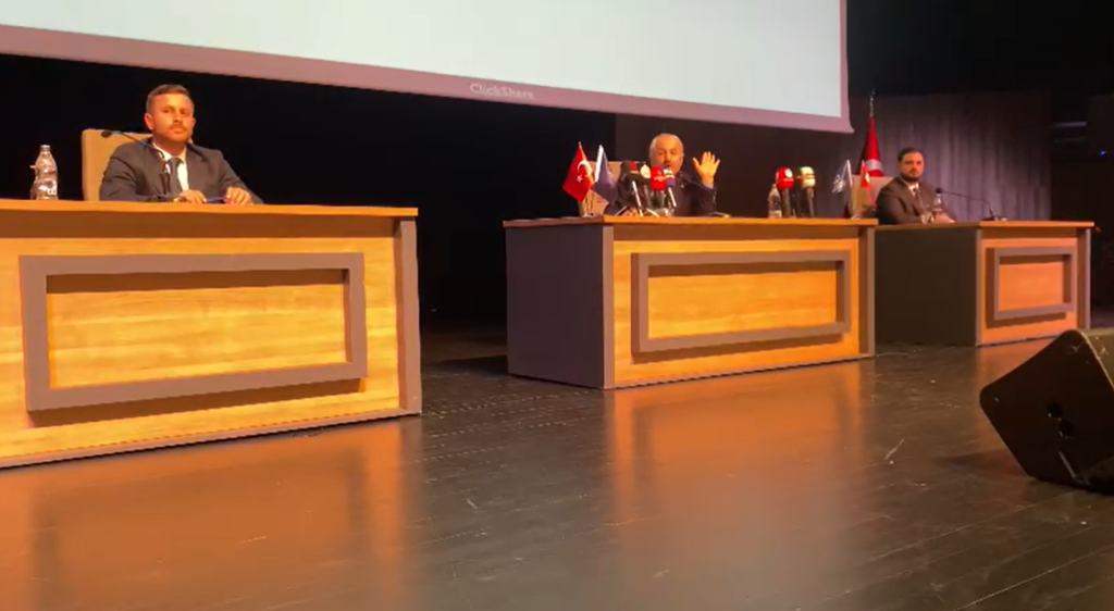 Ahmet Kadı’nın konuşması esnasında Körfez Belediye Meclis Üyesi Erkan Uygun’un Hasan Soba’ya seslenmesi üzerine Gebze Belediye Başkanı Zinnur Büyükgöz araya girerek, “Adam yerine koymayın” ifadelerini kullandı.