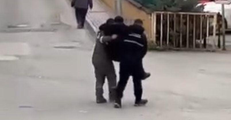 Durumu fark ederek yaşlı adamın yanına giden iki personel, ayakta durmakta güçlük çeken vatandaşı kucaklayarak poliklinik binasına kadar taşıdı.