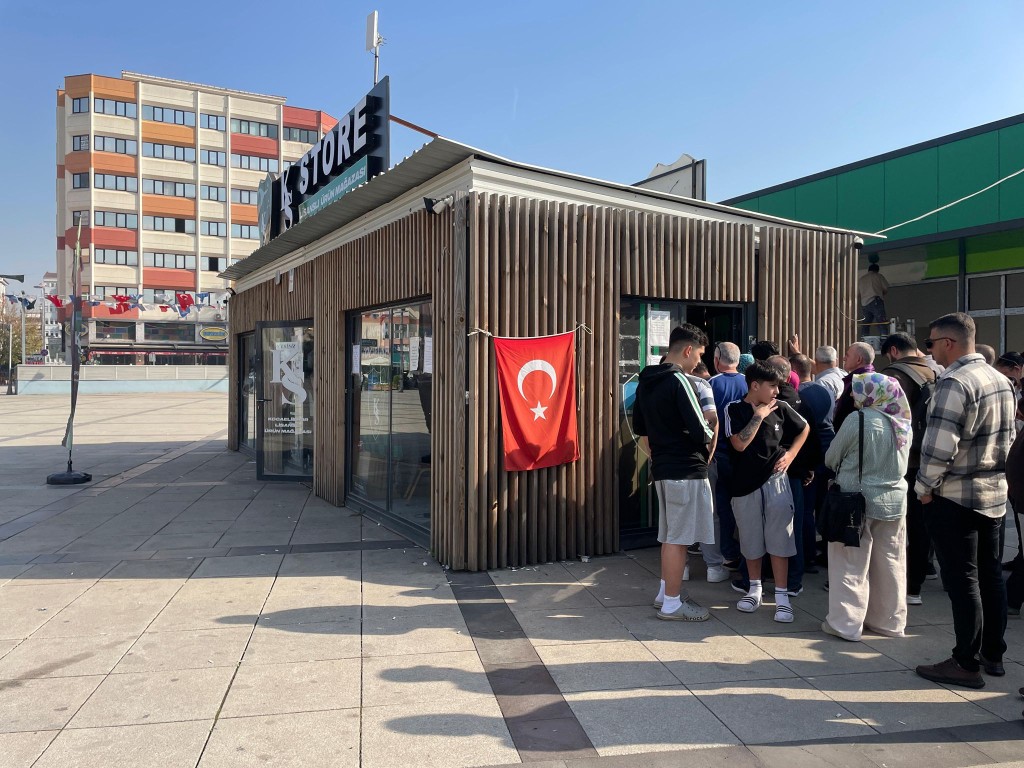 İzmit Yenicuma Meydanı’nda bulunan KS Store önünde uzun kuyruklar oluştu. Kocaelisporlu taraftarlar Galatasaray karşısında tribünde takımlarını destekleyebilmek için yoğun ilgi gösterdi.