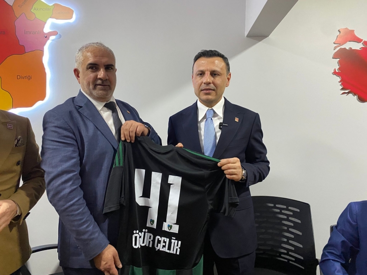 Ziyarete; CHP Genel Başkan Yardımcısı Özgür Karabat, CHP İstanbul İl Başkanı Özgür Çelik, İzmit Belediye Başkanı Fatma Kaplan Hürriyet, Derince Belediye Başkanı Sertif Gökçe, CHP Kocaeli İl Başkanı Erdem Arcan, CHP İzmit İlçe Başkanı Gökhan Ercan ve ilimizin tanınan iş insanlarından aslen Sivaslı olan Ulaş Yıldız katıldı. Programda Federasyon Başkanı Zafer Dolu, Özgür Çelik’e Kocaelispor forması hediye etti.